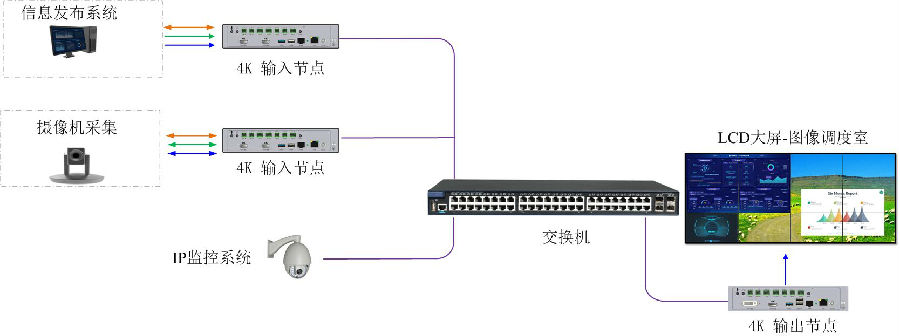 1.4K输入/输出高清分布式LCD拼接,切换、开窗、跨屏漫游、轮巡、轮切。